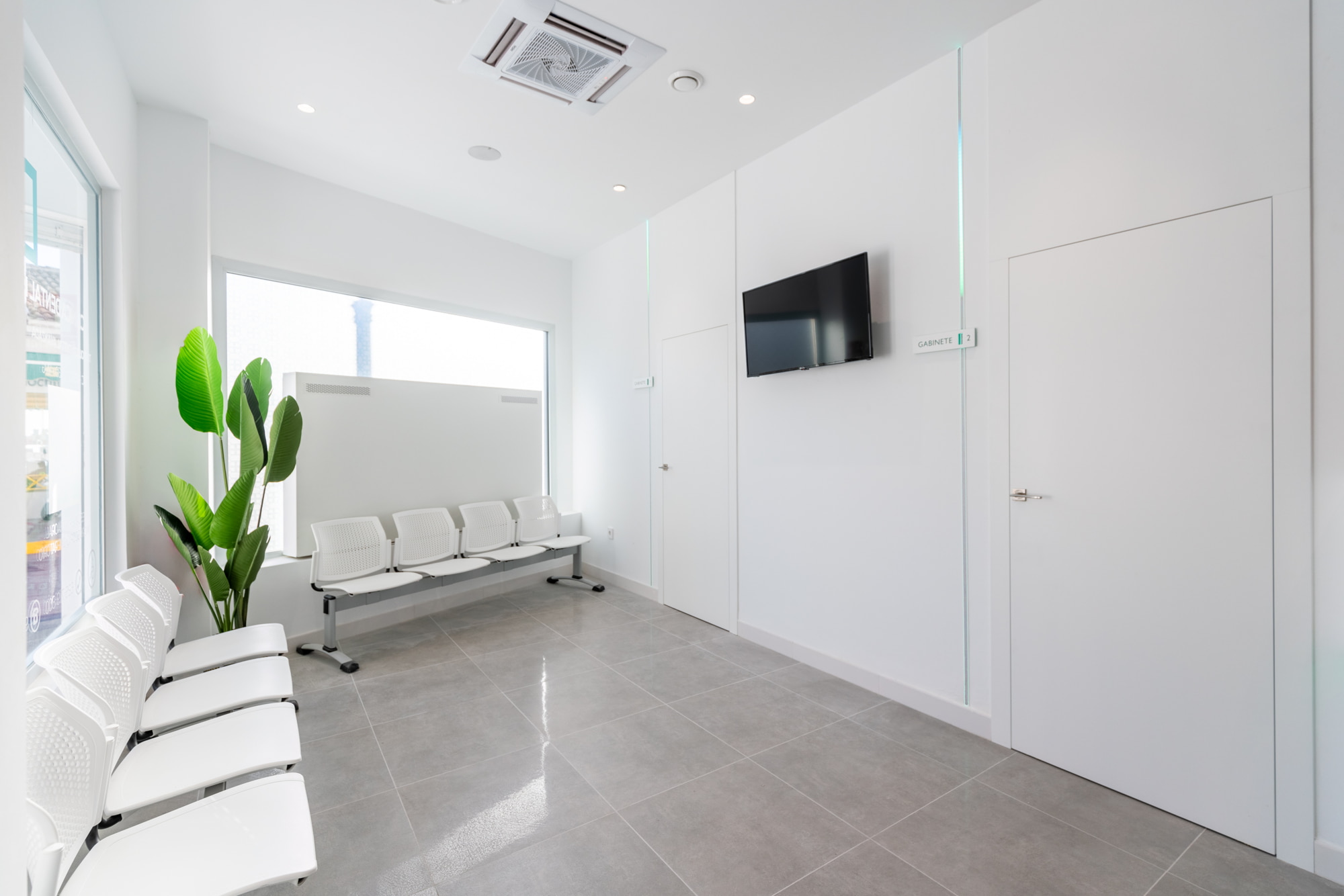 Este proyecto parte del uso del color blanco en toda su pureza, creando una atmósfera limpia, luminosa y visualmente amplia, ideal para un entorno clínico.